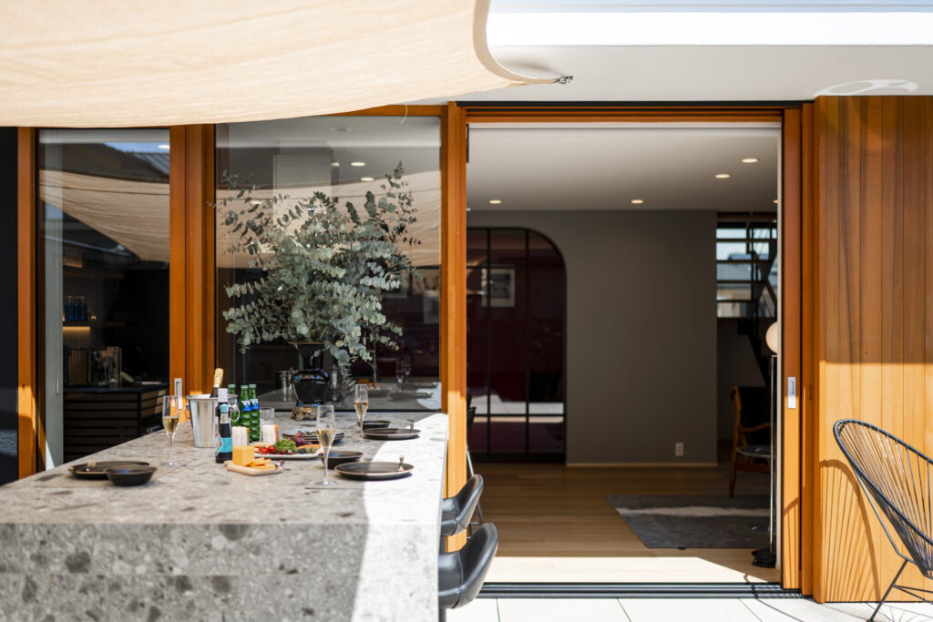 □庭と室内のつながり:季節の景色が暮らしの背景になる、視線と動線の設計。