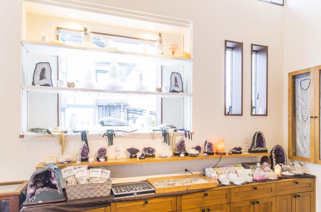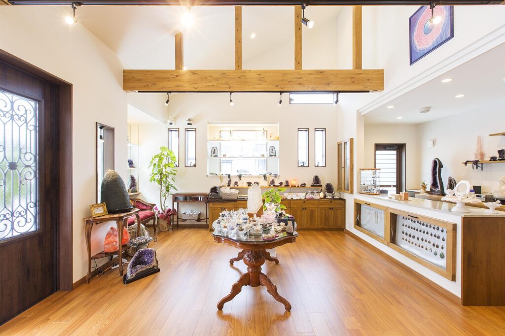 店内は、色やテクスチャーの異なるパワーストーンを見て・触れて・選べるギャラリーのような空間に仕上がりました。