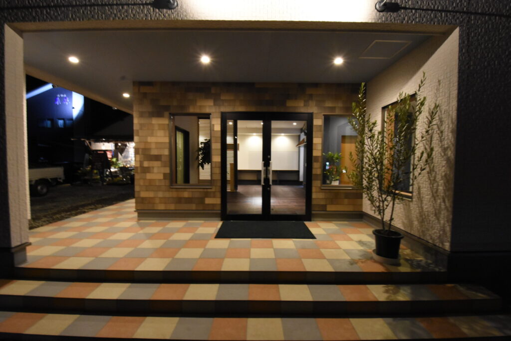 来客を迎える店舗の表情と、帰宅を迎える住まいの表情が素材感で響き合い、日常に少し誇らしさを添える空間に仕上がりました。