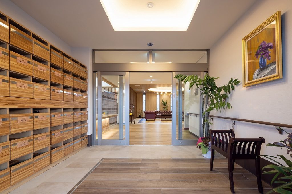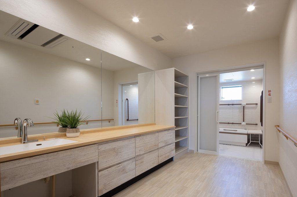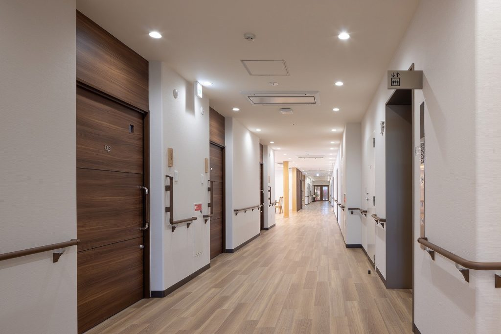 エントランスから共用部にかけては、利用者さま・来訪者・スタッフの動きが滞りにくいよう、出入口まわりや内部の取り合いを現場で確認しながら施工精度を積み上げました。