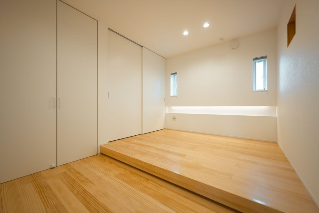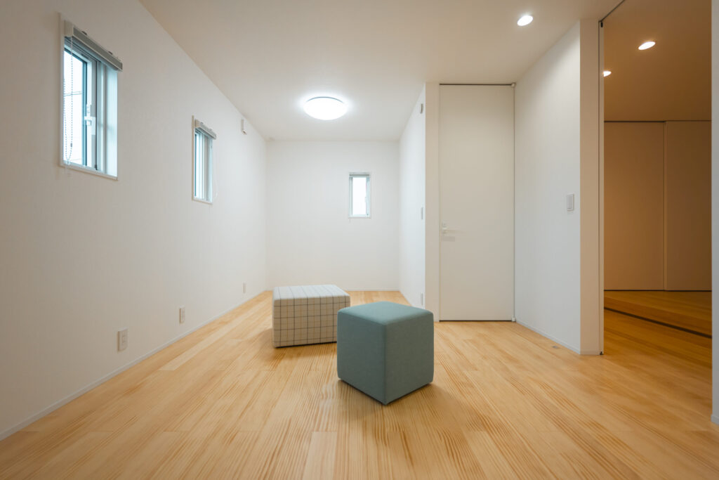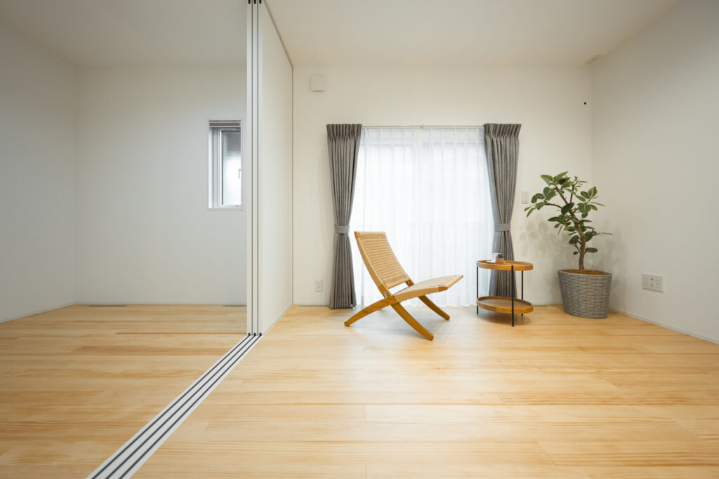 また、主寝室とは別に将来の暮らしの変化に備え、可動間仕切りで一室を分けられる計画も取り入れています。