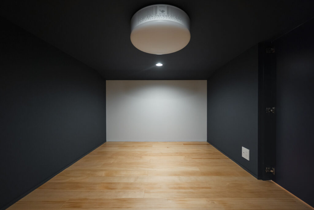 小屋裏スペースを利用した、まるで秘密基地のようなシアタールーム。